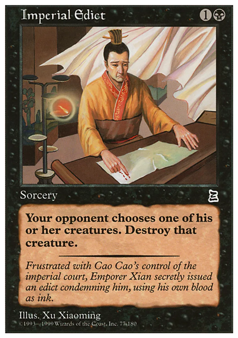 Magic: the Gathering (mtg) Common Sorcery Imperial Edict from Portal Three Kingdoms (PTK) last updated 2026-02-24 15:07:03