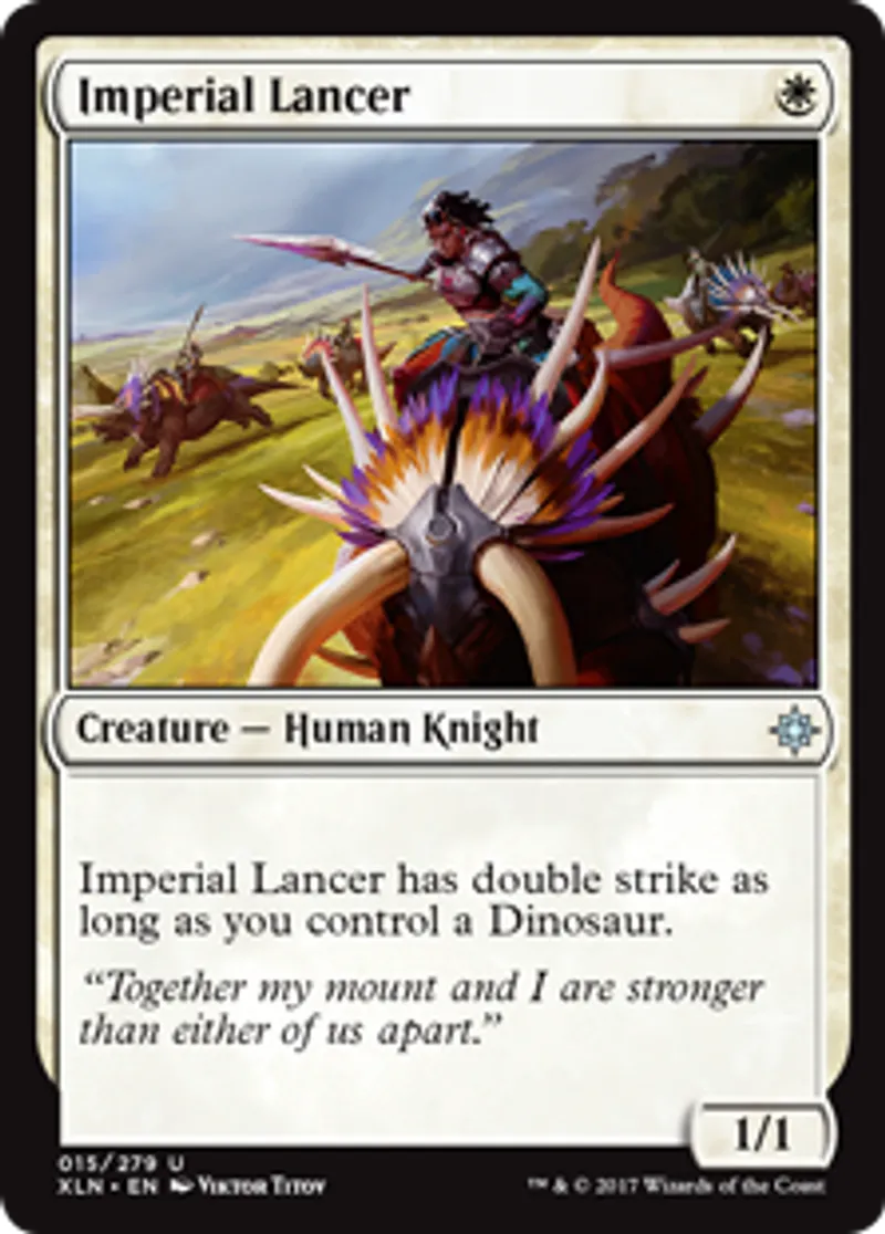 | Oracle Text | Imperial Lancer has double strike as long as you control a Dinosaur. | ||
