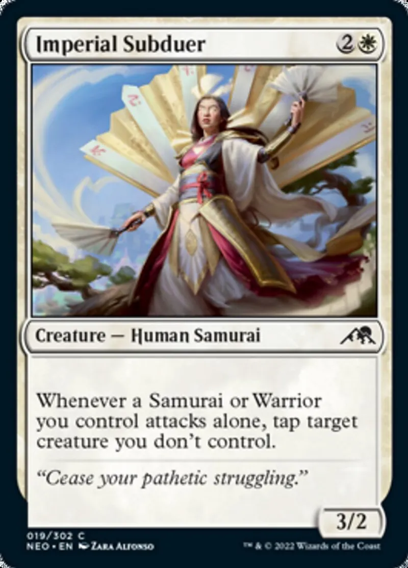 Imperial Subduer is a common in the set Kamigawa: Neon Dynasty.