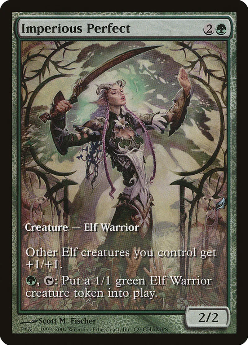 Magic: the Gathering (mtg) Special Creature — Elf Warrior Imperious Perfect from Champs Promos (pCHP) last updated 2026-02-24 14:32:06