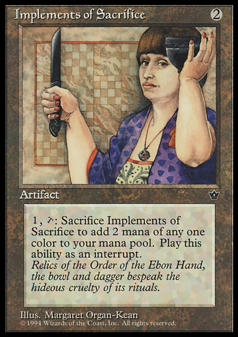 Magic: the Gathering (mtg) Rare Artifact Implements of Sacrifice from Fallen Empires (FEM) last updated 2026-02-25 15:12:02