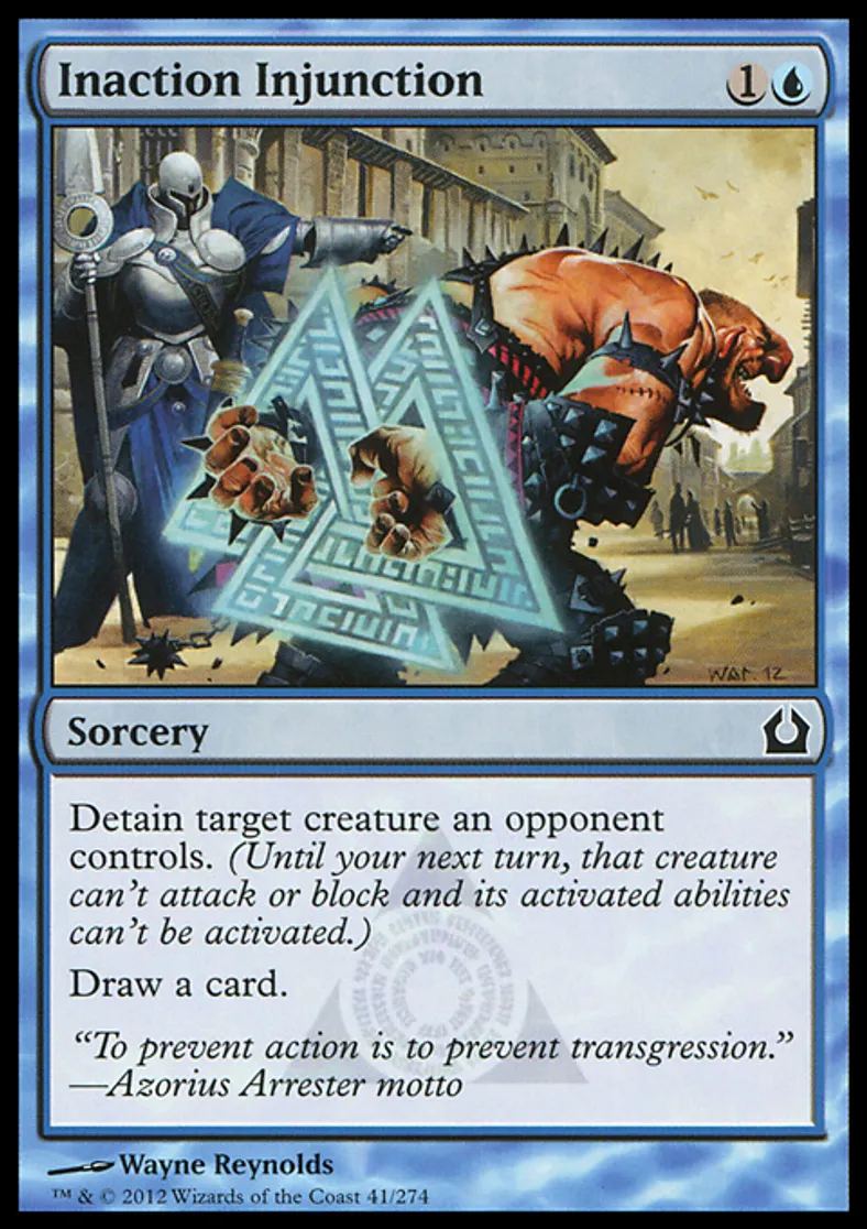 Inaction Injunction is a Common in the set Return to Ravnica.