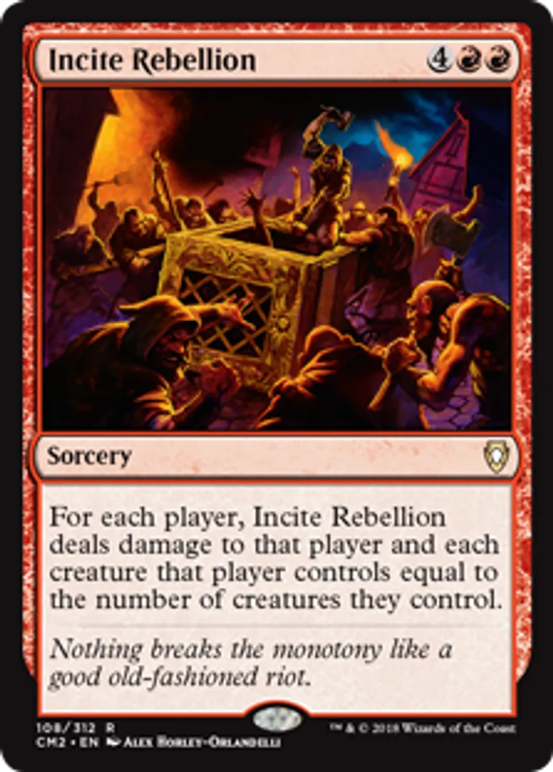 | Oracle Text | For each player, Incite Rebellion deals damage to that player and each creature that player controls equal to the number of creatures they control. | ||