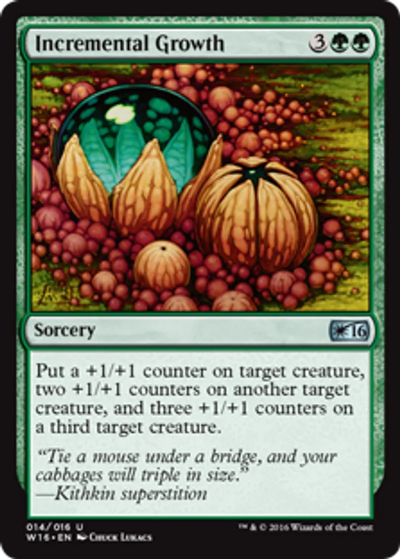 Magic: the Gathering (mtg) Uncommon Sorcery Incremental Growth from Welcome Deck 2016 (W16) last updated 2026-02-21 17:24:36