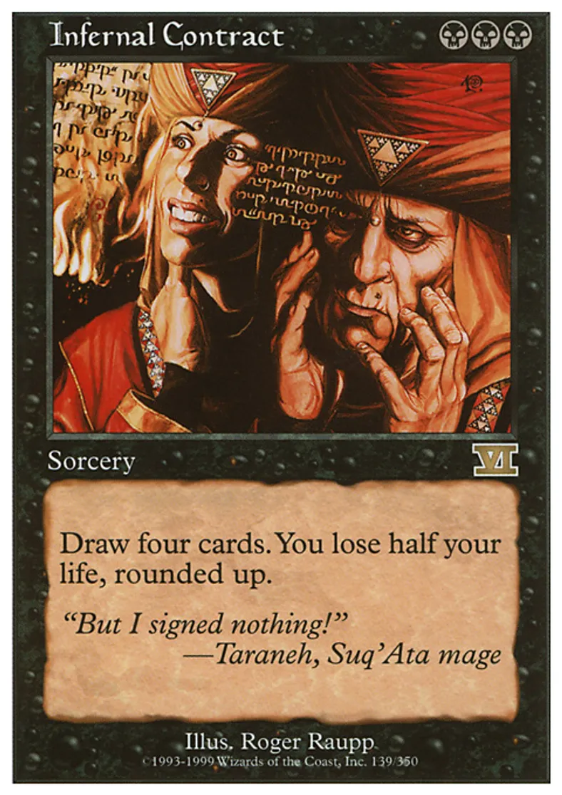 Magic: the Gathering (mtg) Rare Sorcery Infernal Contract from Classic Sixth Edition (6ED) last updated 2026-02-25 15:49:32