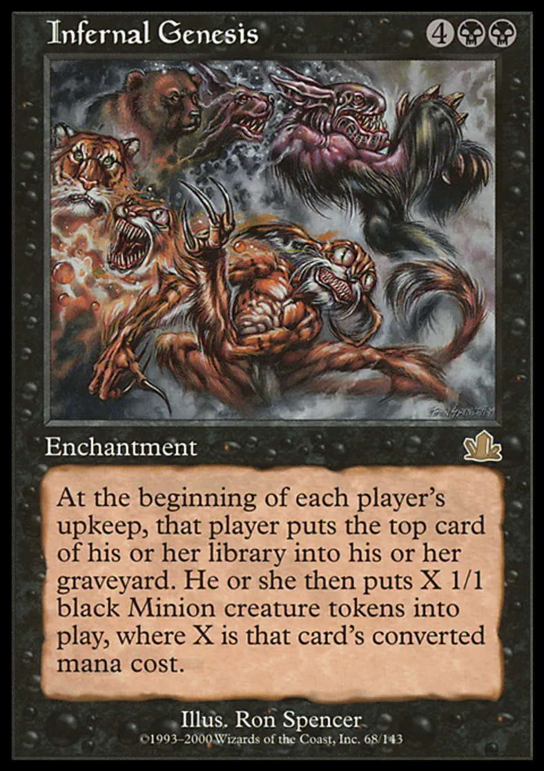 Magic: the Gathering (mtg) Rare Enchantment Infernal Genesis from Prophecy (PCY) last updated 2026-02-21 15:06:07