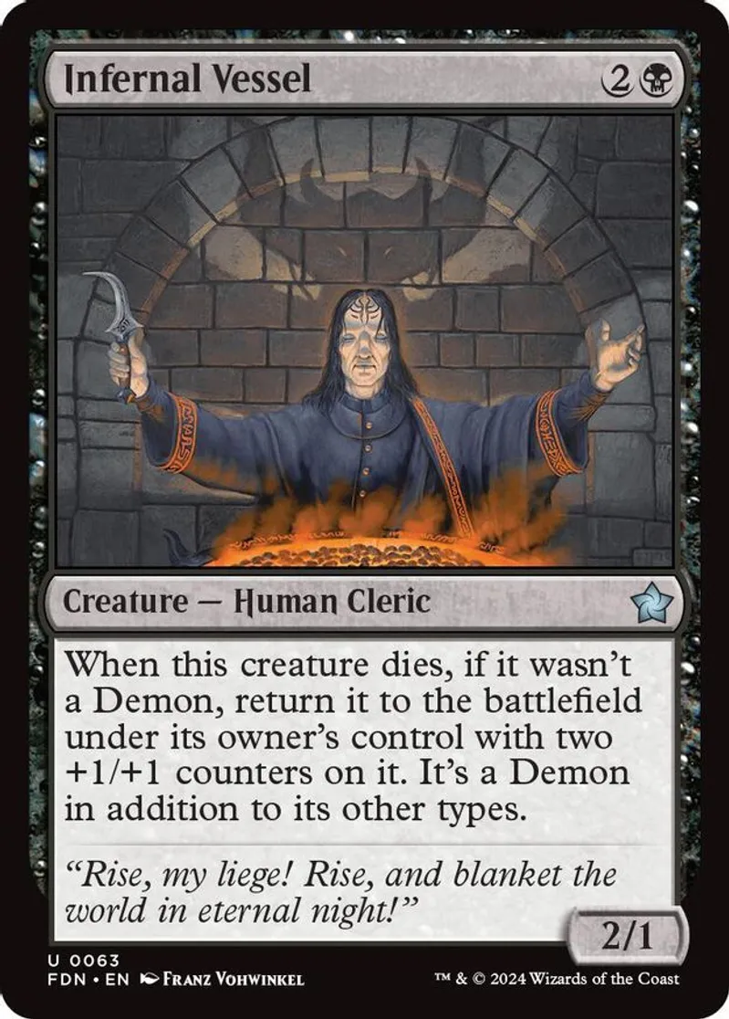 Magic: the Gathering (mtg) Uncommon creature — human cleric Infernal Vessel from Foundations (FDN) last updated 2025-12-13 15:31:32