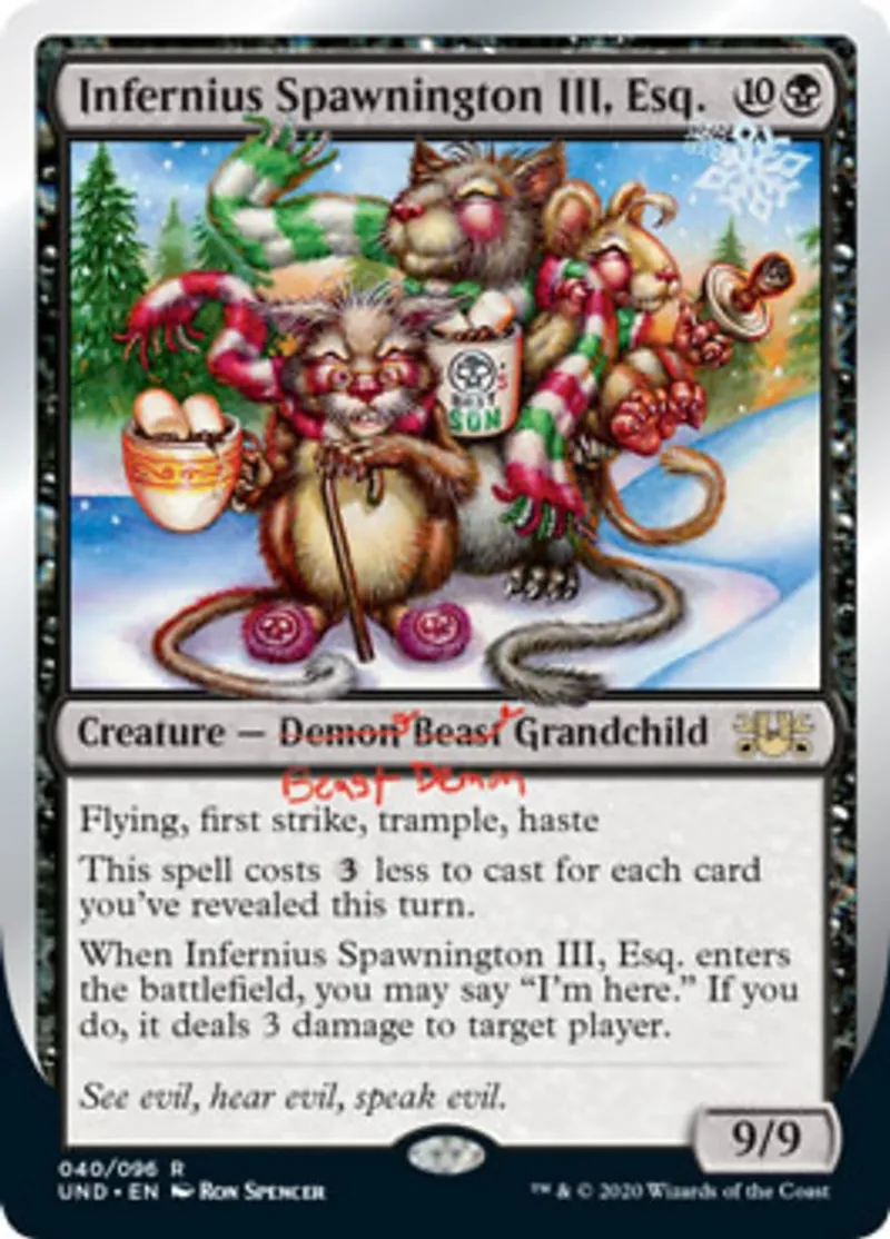 Infernius Spawnington III, Esq. is a rare in the set Unsanctioned.
