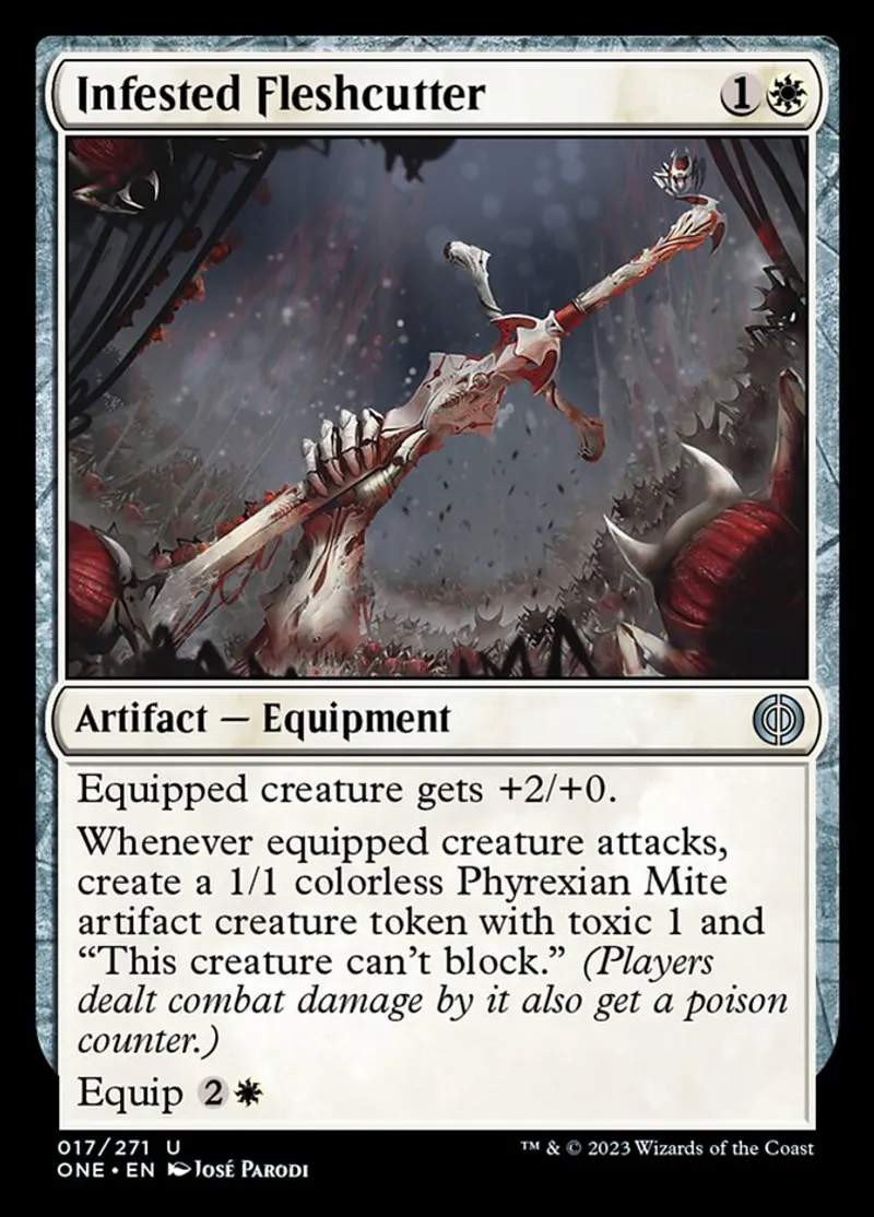 Magic: the Gathering (mtg) uncommon Artifact — Equipment Infested Fleshcutter from Phyrexia: All Will Be One (one) last updated 2026-02-21 16:20:01
