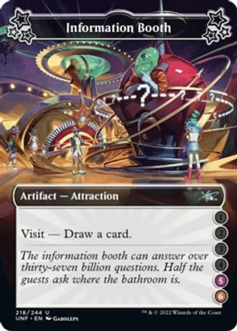 Magic: the Gathering (mtg) Uncommon Artifact — Attraction Information Booth from Unfinity (UNF) last updated 2026-02-21 16:13:01