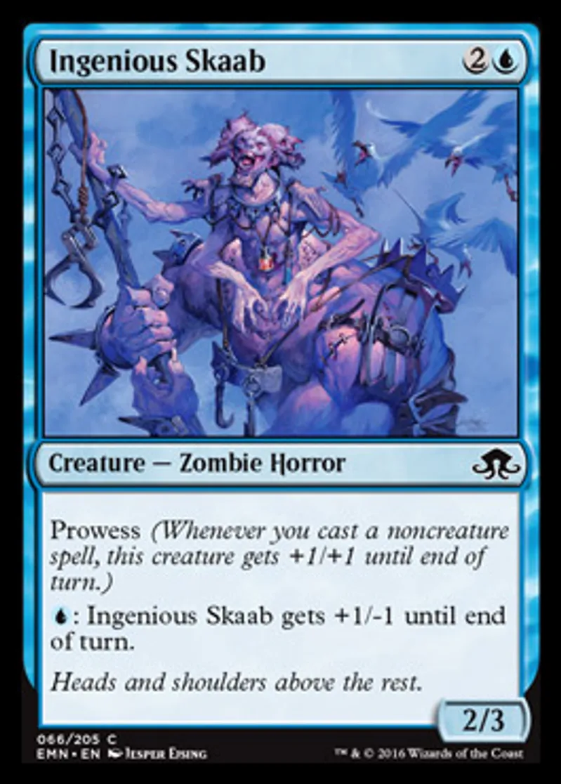 | Oracle Text | Prowess (Whenever you cast a noncreature spell, this creature gets +1/+1 until end of turn.) {{u}}: Ingenious Skaab gets +1/-1 until end of turn. | ||