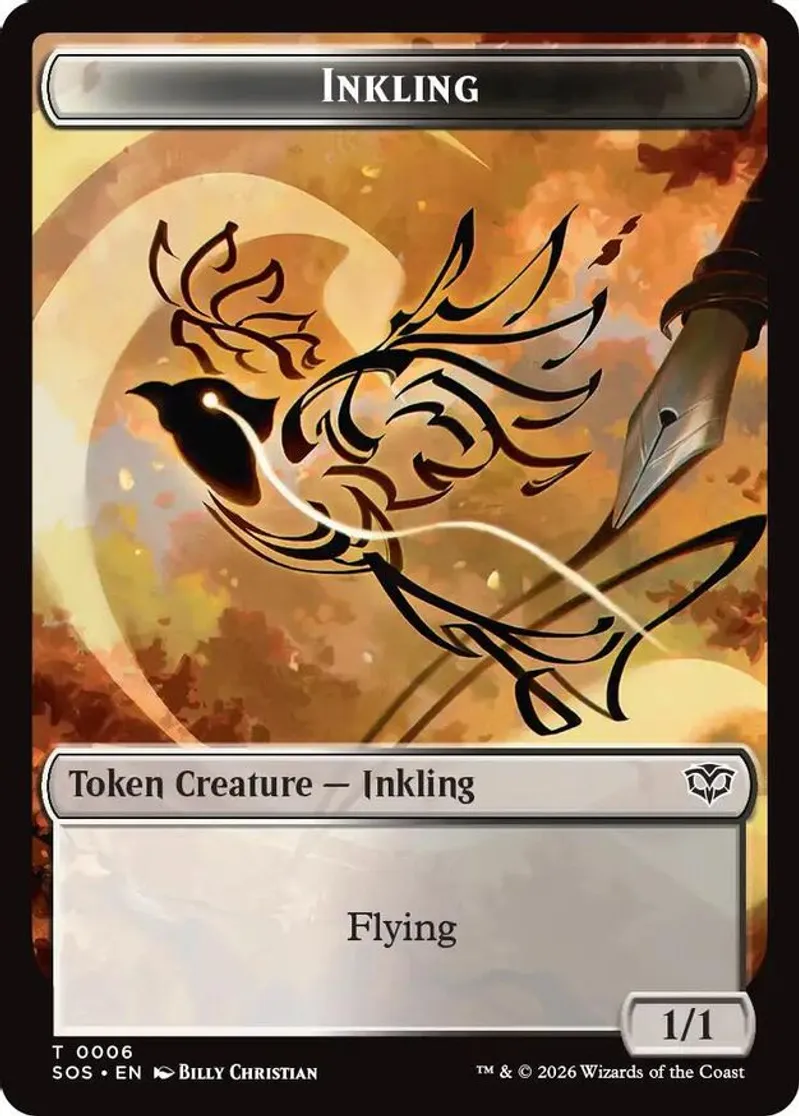Magic: the Gathering (mtg) Token token creature — inkling // token creature — spirit Inkling from Secrets of Strixhaven (SOS) last updated 2026-04-16 23:18:38