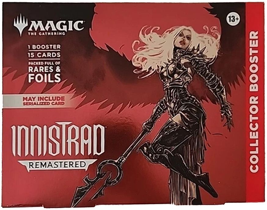 uncover innistrad’s most devilish threats and blessed relics. collector boosters are possessed with rare and/or mythic rare cards guaranteed, plus traditional foils and special treatments you won’t find anywhere else—like a serialized edgar markov* card, the first vampire of innistrad. *serialized edgar markov cards are localized in english only and are available in innistrad remastered collector boosters of any language. non-serialized edgar markov cards found in innistrad remastered are mechanically identical to their serialized variants. 1 serialized edgar markov card can be found in <1% of boosters. contents: •1 magic: the gathering innistrad remastered collector booster; each one containing 15 cards | ||