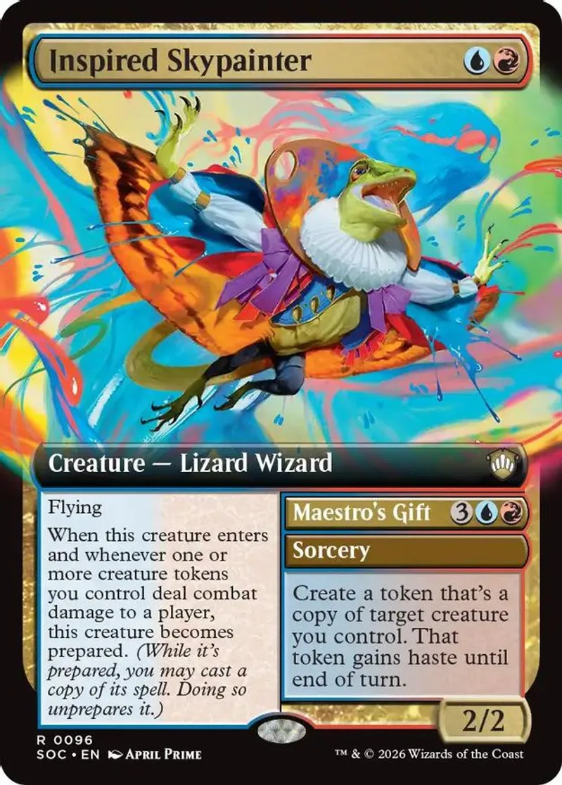 Magic: the Gathering (mtg) Rare creature — lizard wizard Inspired Skypainter from Commander: Secrets of Strixhaven (SOC) last updated 2026-04-17 00:32:14