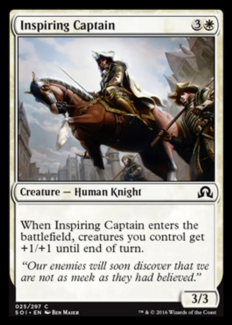 | Oracle Text | When Inspiring Captain enters the battlefield, creatures you control get +1/+1 until end of turn. | ||