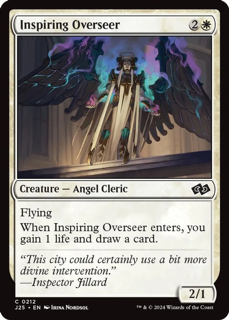 Magic: the Gathering (mtg) Common creature — angel cleric Inspiring Overseer from Foundations Jumpstart (J25) last updated 2026-02-21 15:33:32
