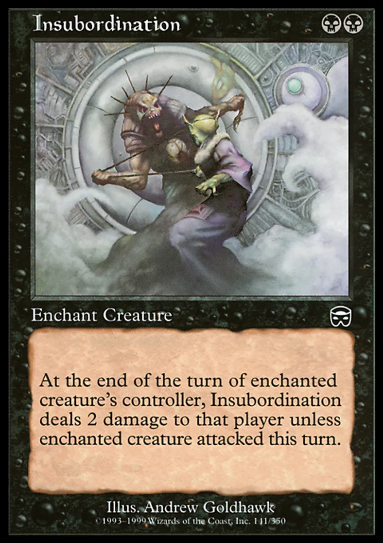 Magic: the Gathering (mtg) Common Enchantment - Aura Insubordination from Mercadian Masques (MMQ) last updated 2026-01-30 15:12:33