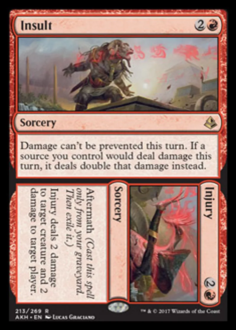 Magic: the Gathering (mtg) Rare Sorcery Insult // Injury from Amonkhet (AKH) last updated 2026-02-24 16:04:02