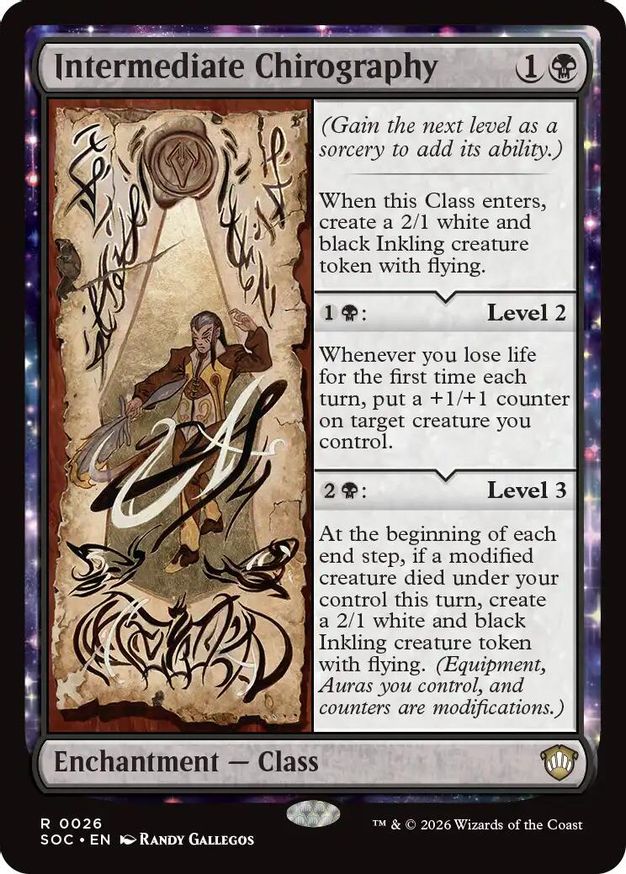 Magic: the Gathering (mtg) Rare enchantment — class Intermediate Chirography from Commander: Secrets of Strixhaven (SOC) last updated 2026-04-17 00:15:42