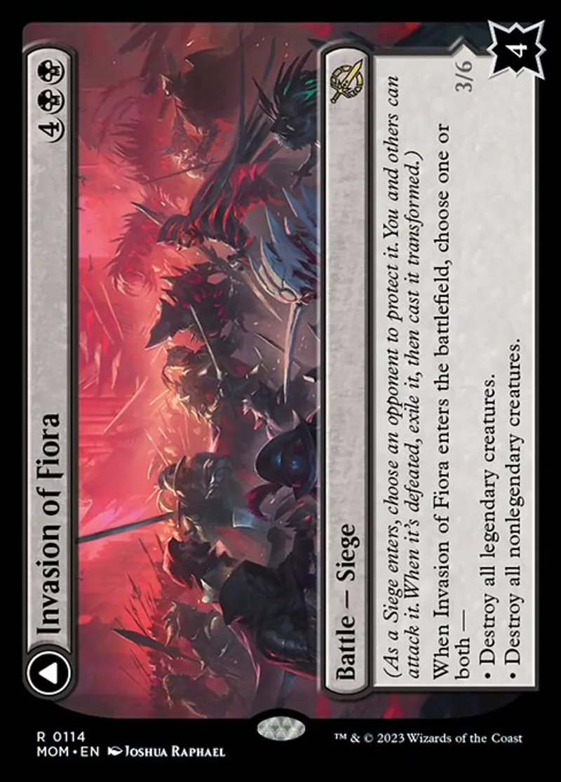 Magic: the Gathering (mtg) Rare Battle — Siege // Legendary Creature — Human Noble Invasion of Fiora from March of the Machine (mom) last updated 2026-02-21 16:22:32