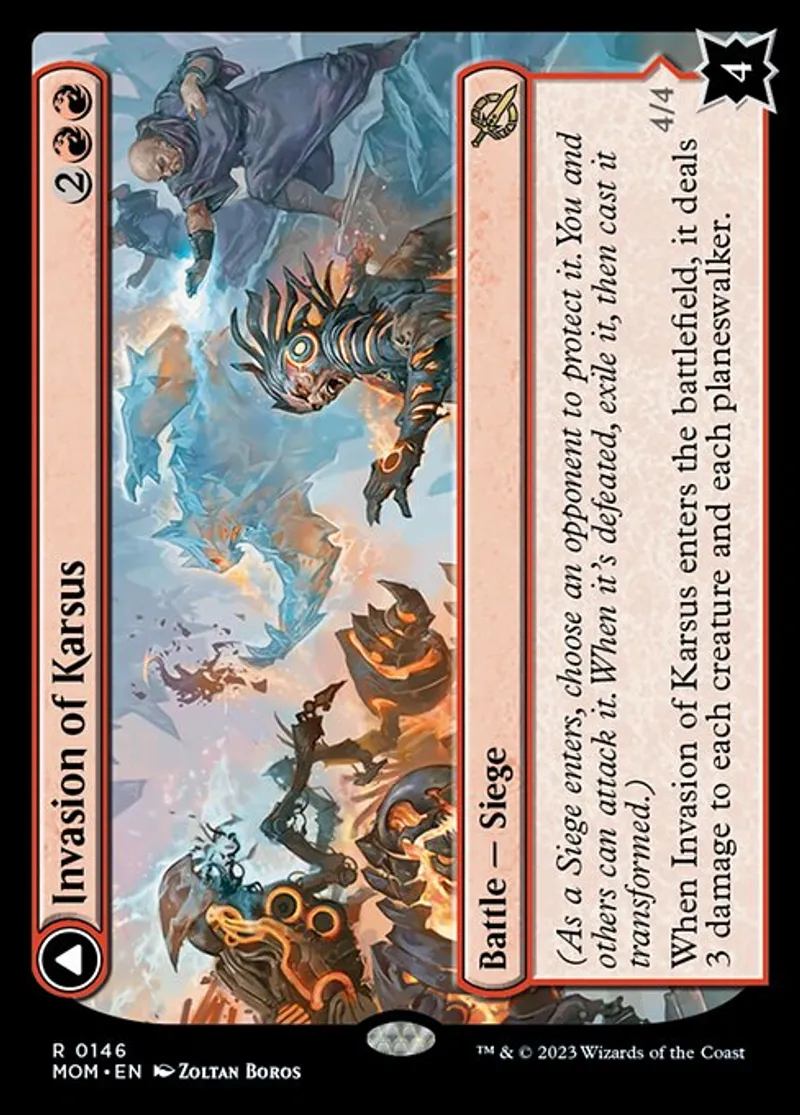 Magic: the Gathering (mtg) Rare Battle — Siege // Creature — Elemental Invasion of Karsus from March of the Machine (mom) last updated 2026-02-21 16:22:32