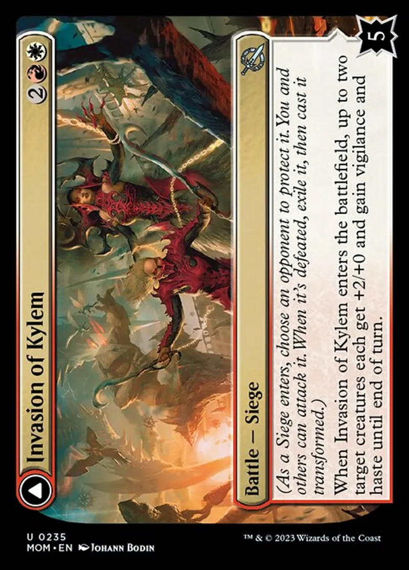 Magic: the Gathering (mtg) Uncommon Battle — Siege // Sorcery Invasion of Kylem from March of the Machine (mom) last updated 2026-02-21 16:22:32