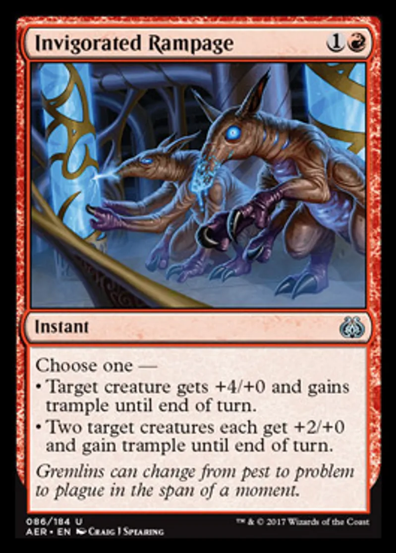 Invigorated Rampage is a Uncommon in the set Aether Revolt.
