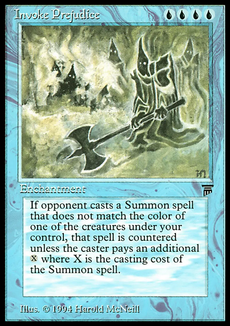 Magic: the Gathering (mtg) Rare Enchantment Invoke Prejudice from Legends (LEG) last updated 2020-09-01 13:18:15