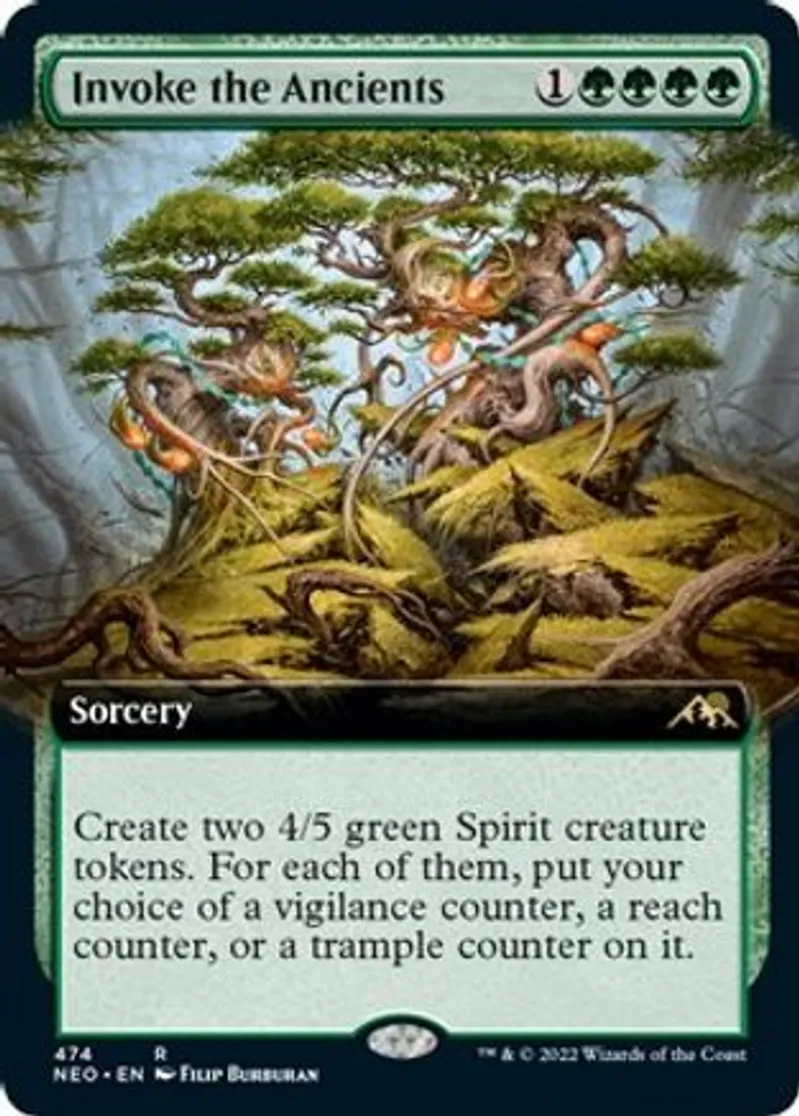 Invoke the Ancients (Extended Art) is a Rare in the set Kamigawa: Neon Dynasty.