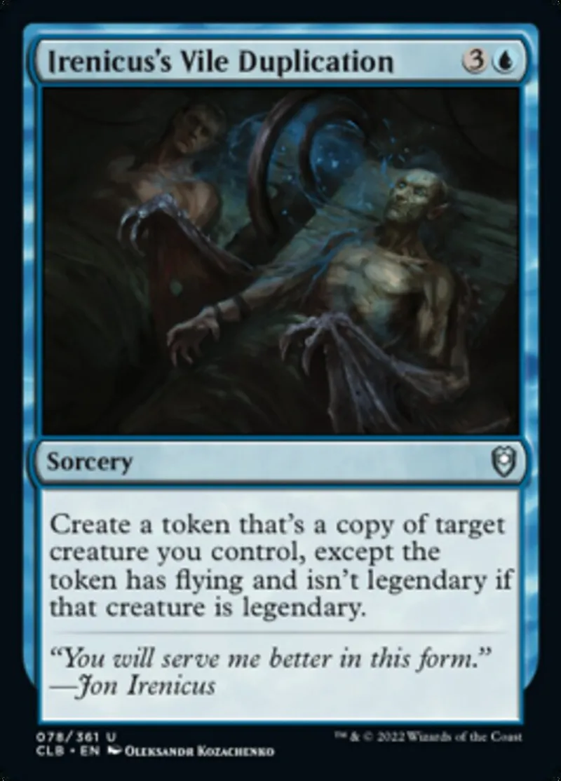 Magic: the Gathering (mtg) uncommon Sorcery Irenicus's Vile Duplication from Commander Legends: Battle for Baldur's Gate (clb) last updated 2026-02-24 15:37:02