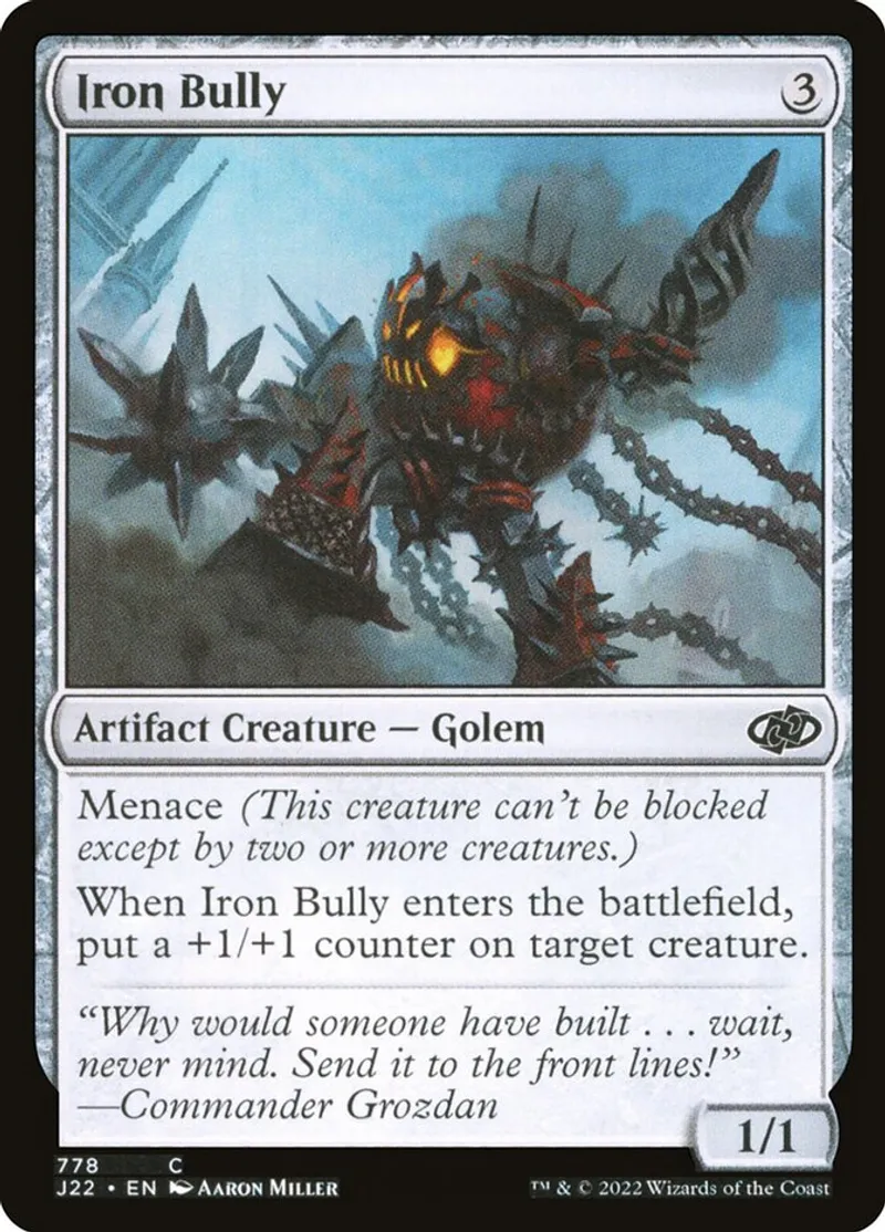 Magic: the Gathering (mtg) Common Artifact Creature — Golem Iron Bully from Jumpstart 2022 (J22) last updated 2026-02-21 16:19:33