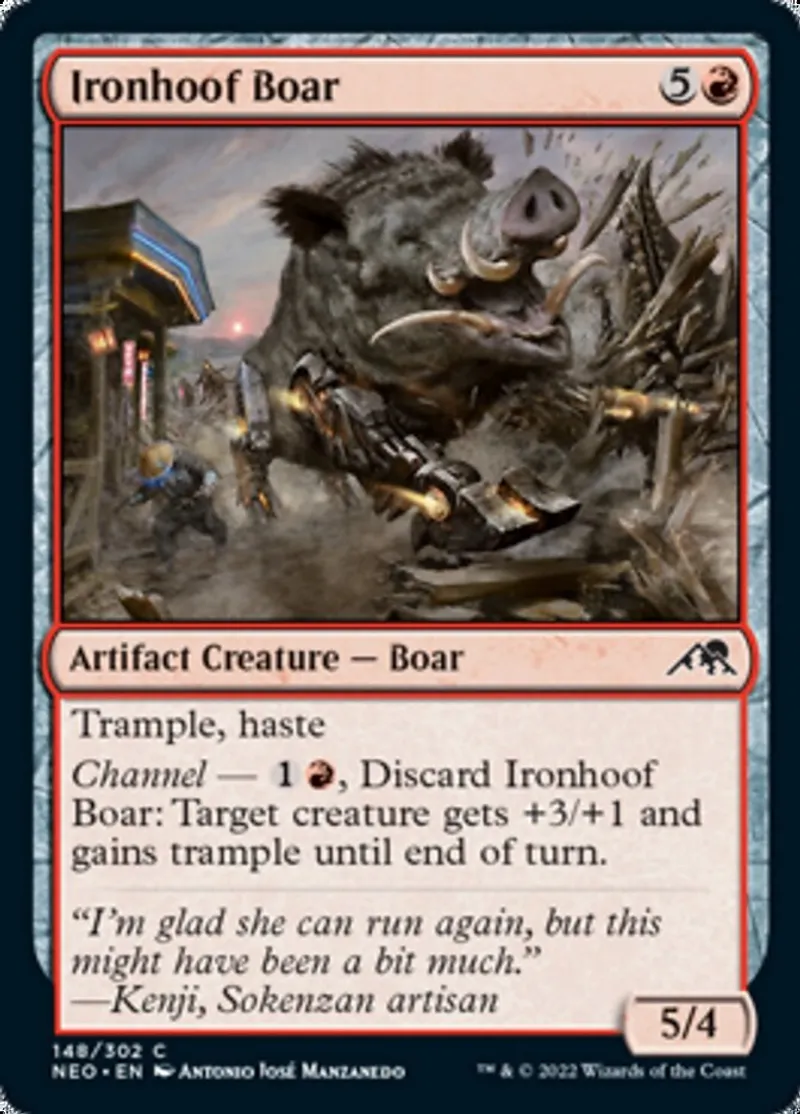 Ironhoof Boar is a common in the set Kamigawa: Neon Dynasty.