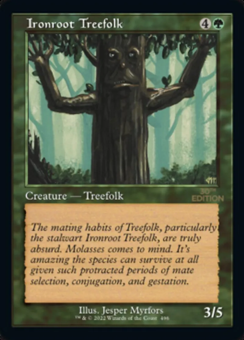 Ironroot Treefolk (Retro Frame) is a common in the set 30th Anniversary Edition.