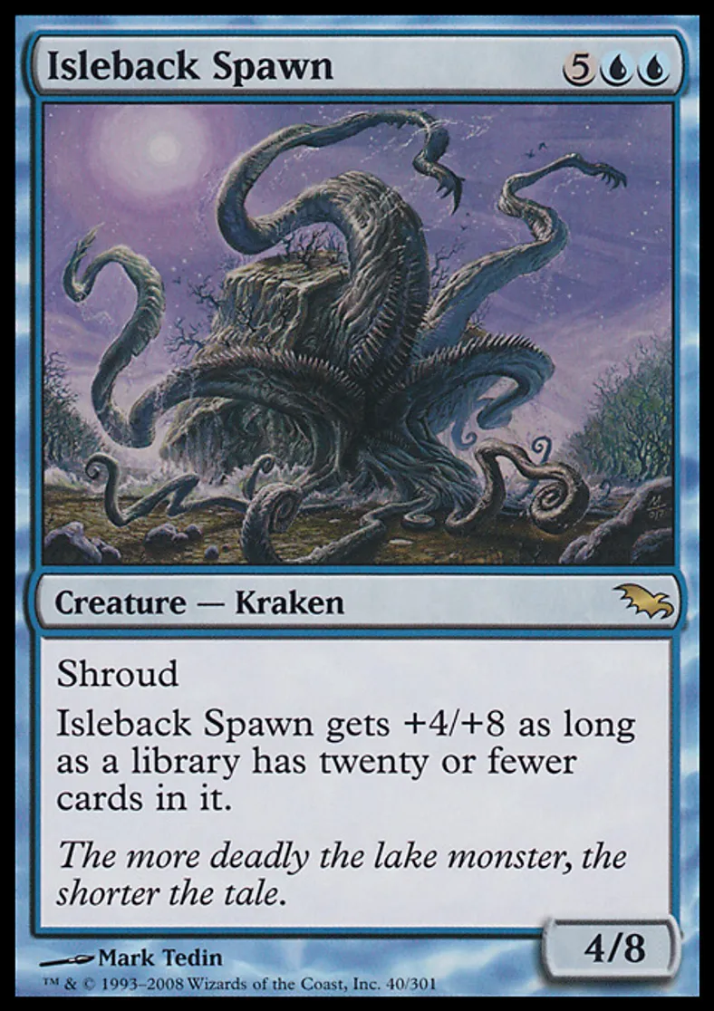 | Oracle Text | Shroud Isleback Spawn gets +4/+8 as long as a library has twenty or fewer cards in it. | ||