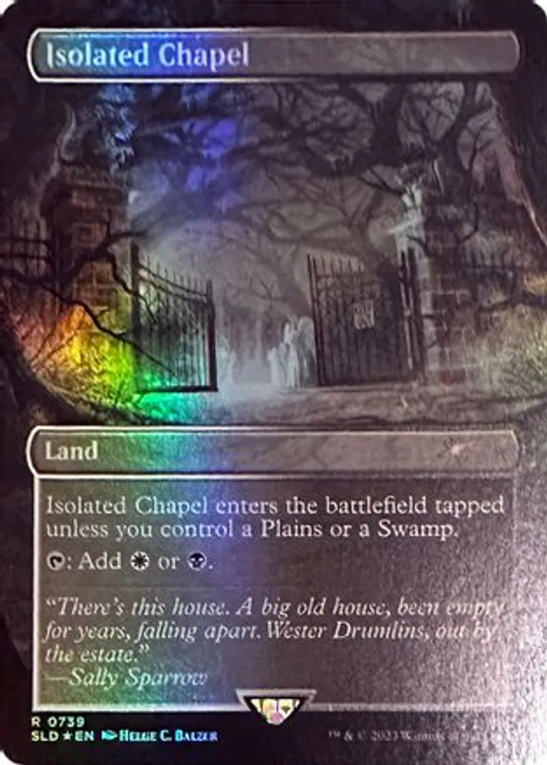 Magic: the Gathering (mtg) Rare Land Isolated Chapel from Secret Lair Drop Series (SLD) last updated 2026-02-18 14:15:03