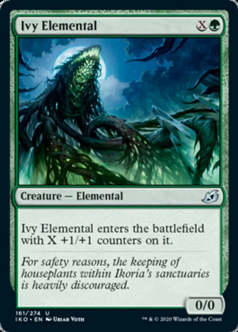 Magic: the Gathering (mtg) uncommon Creature — Elemental Ivy Elemental from Ikoria: Lair of Behemoths (iko) last updated 2026-02-21 16:24:32