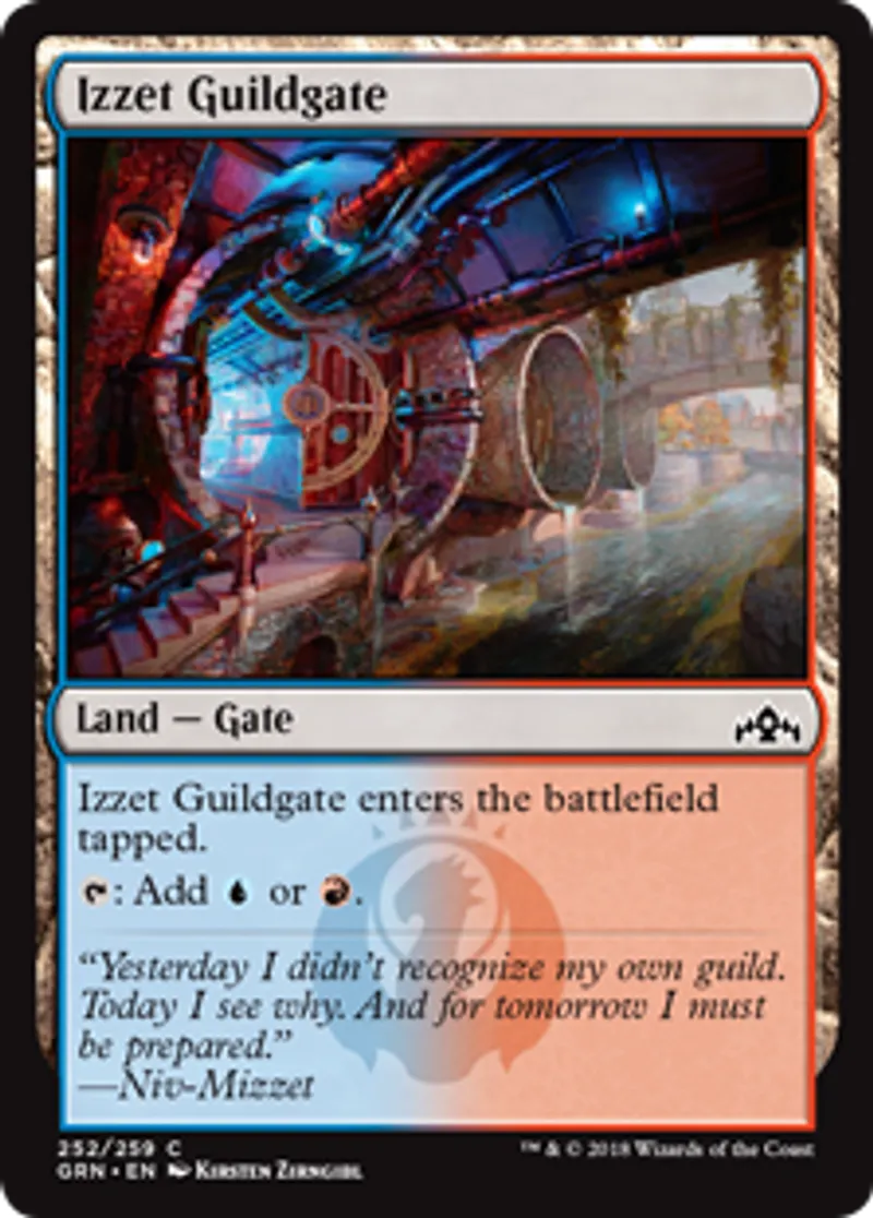 | Oracle Text | Izzet Guildgate enters the battlefield tapped. {{t}}: Add {{u}} or {{r}}. | ||