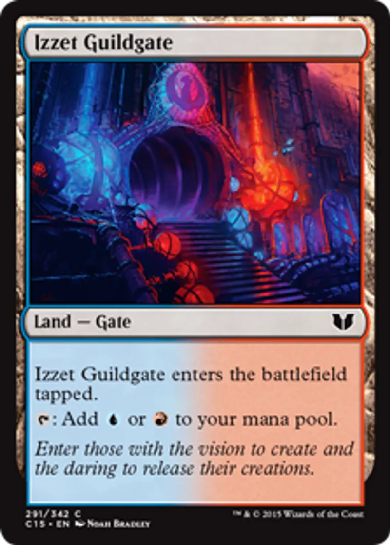 Magic: the Gathering (mtg) Common Land - Gate Izzet Guildgate from Commander 2015 (C15) last updated 2026-02-14 17:23:07