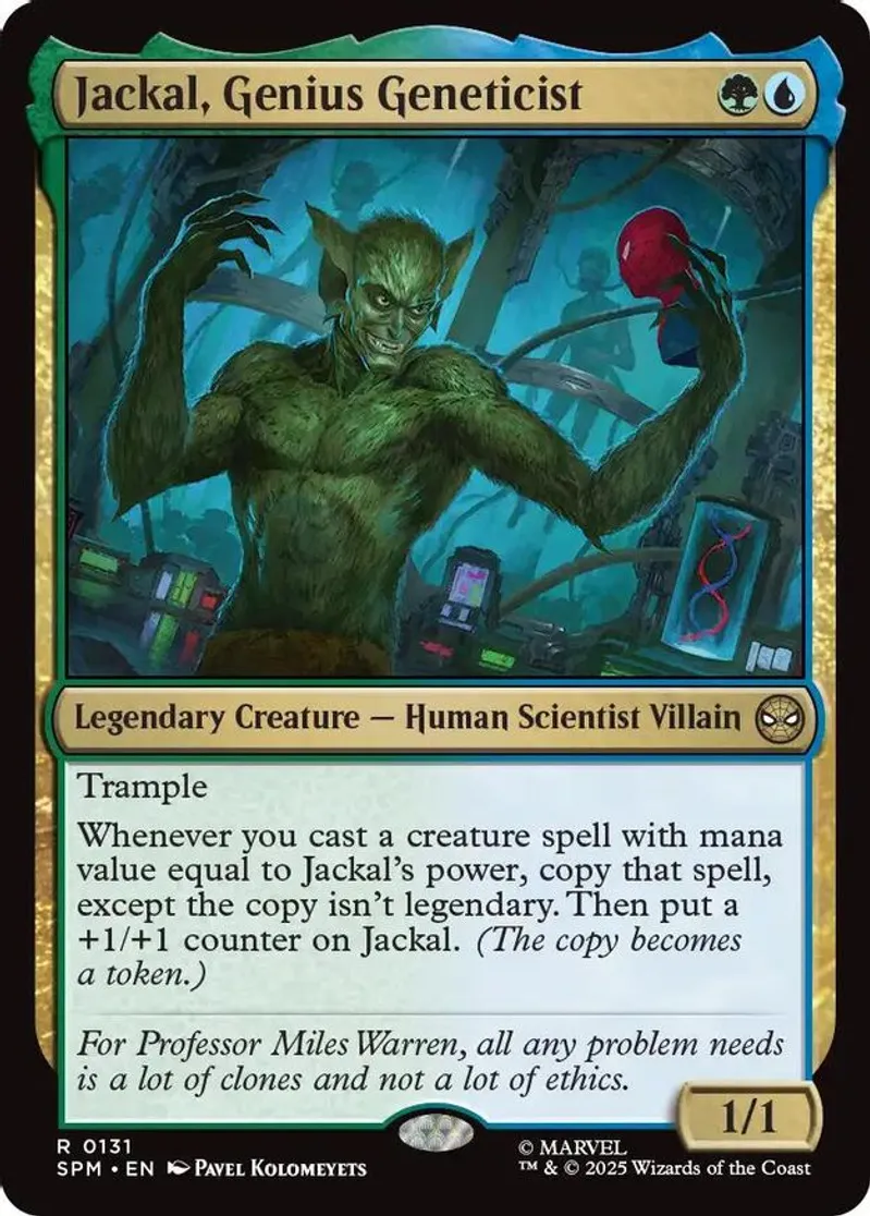 Magic: the Gathering (mtg) Rare legendary creature — human scientist villain Jackal, Genius Geneticist from Marvel's Spider-Man (SPM) last updated 2026-03-04 16:09:32