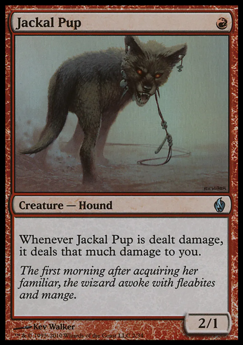 | Oracle Text | Whenever Jackal Pup is dealt damage, it deals that much damage to you. | ||