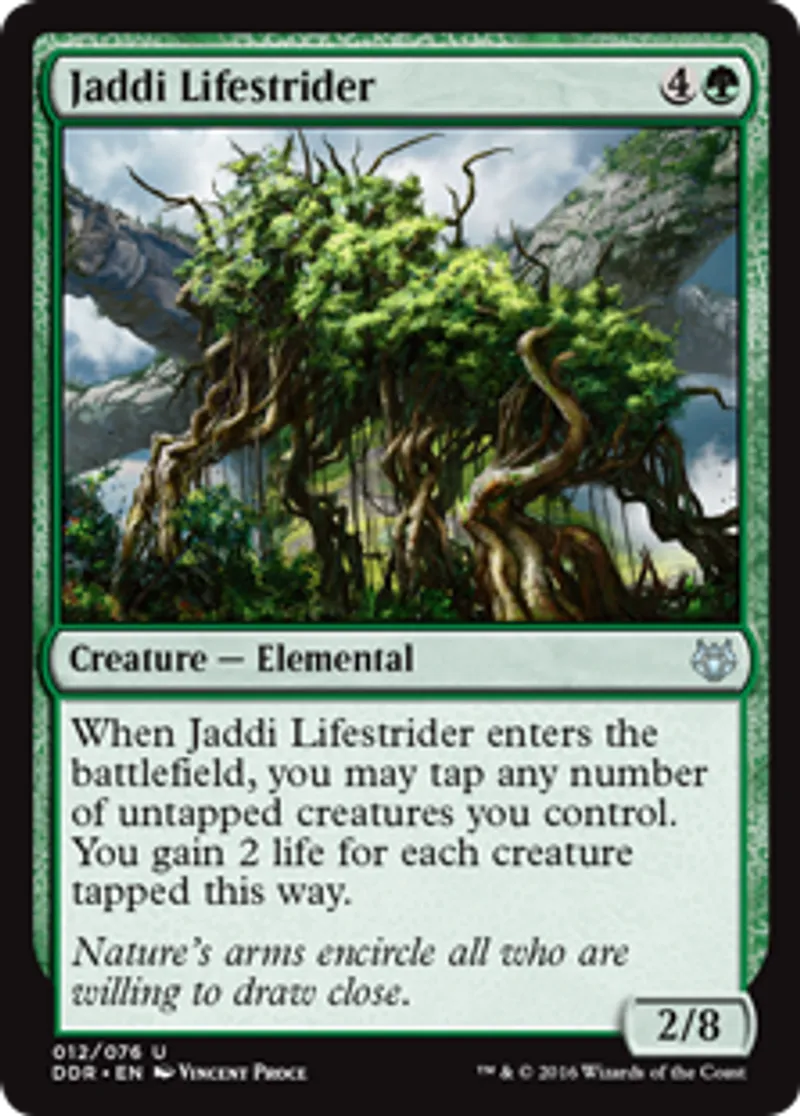 | Oracle Text | When Jaddi Lifestrider enters the battlefield, you may tap any number of untapped creatures you control. You gain 2 life for each creature tapped this way. | ||