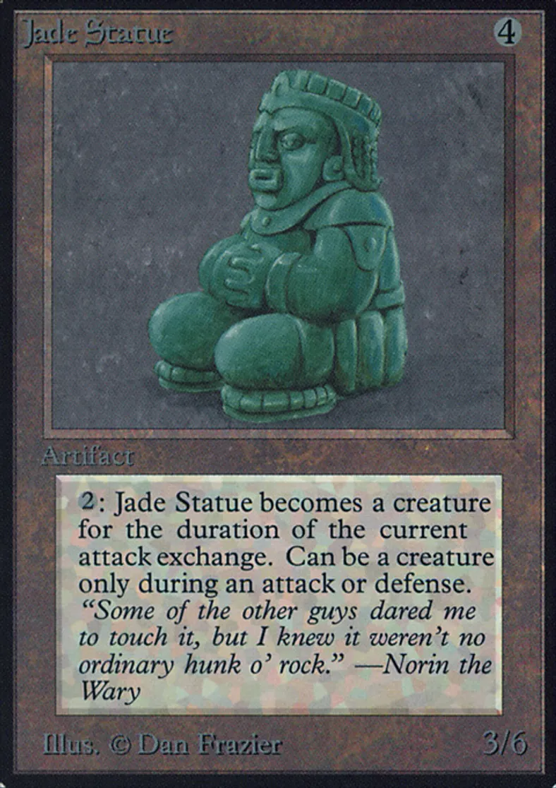 | Oracle Text | {{2}}: Jade Statue becomes a 3/6 Golem artifact creature until end of combat. Activate this ability only during combat. | ||