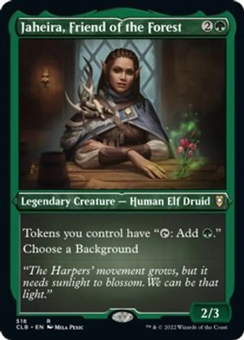 Magic: the Gathering (mtg) Rare Legendary Creature — Human Elf Druid Jaheira, Friend of the Forest from Commander Legends: Battle for Baldur's Gate (CLB) last updated 2026-04-10 15:43:06