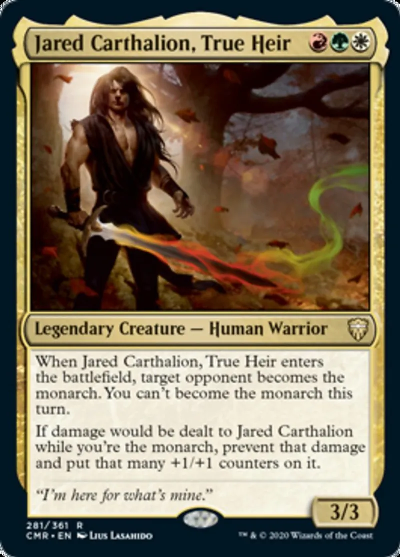 | Oracle Text | When Jared Carthalion, True Heir enters the battlefield, target opponent becomes the monarch. You can't become the monarch this turn.