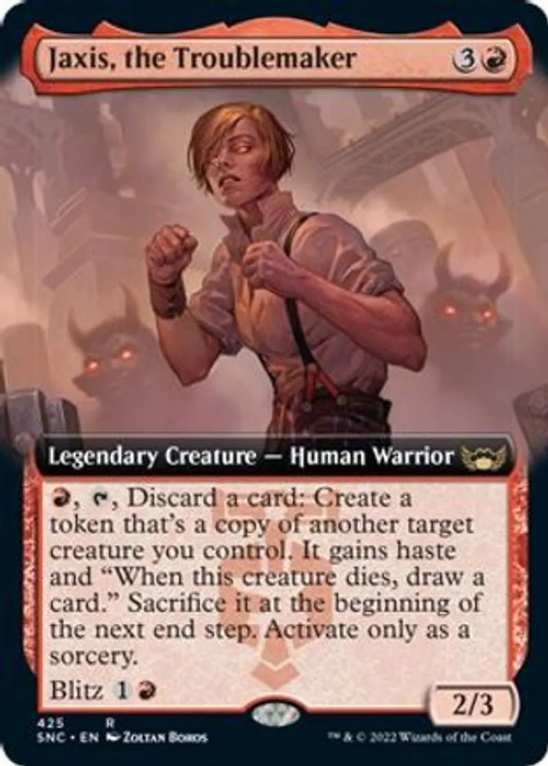 Jaxis, the Troublemaker (Extended Art) is a Rare in the set Streets of New Capenna.