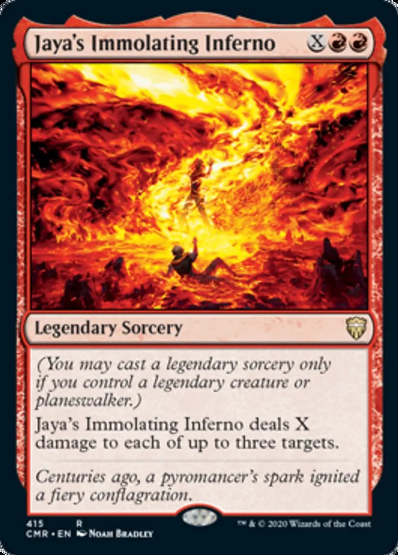 Jaya's Immolating Inferno is a Rare in the set Commander Legends.