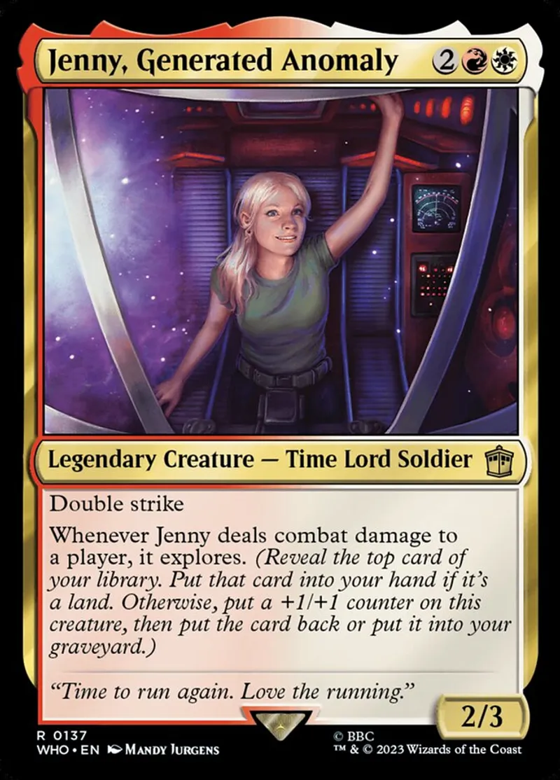 Magic: the Gathering (mtg) rare Legendary Creature — Time Lord Soldier Jenny, Generated Anomaly from Doctor Who (who) last updated 2026-02-21 15:48:06