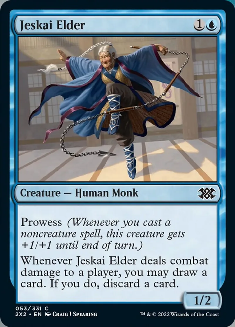 Magic: the Gathering (mtg) common Creature — Human Monk Jeskai Elder from Double Masters 2022 (2x2) last updated 2026-02-21 16:08:35