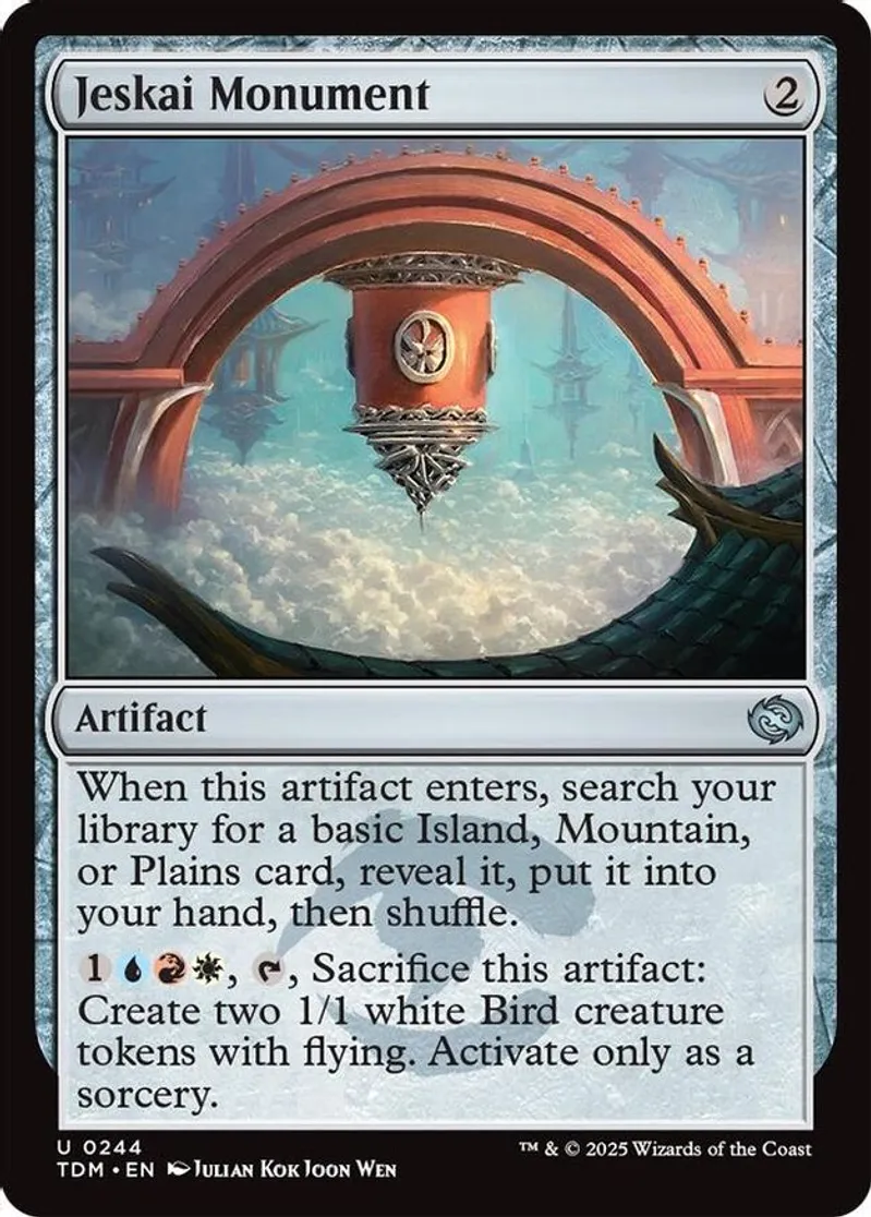 Magic: the Gathering (mtg) Uncommon artifact Jeskai Monument from Tarkir: Dragonstorm (TDM) last updated 2025-12-20 15:37:02