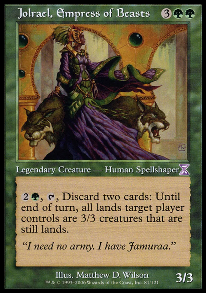 Magic: the Gathering (mtg) Special Legendary Creature - Human Spellshaper Jolrael, Empress of Beasts from Time Spiral "Timeshifted" (TSB) last updated 2026-02-24 15:53:33